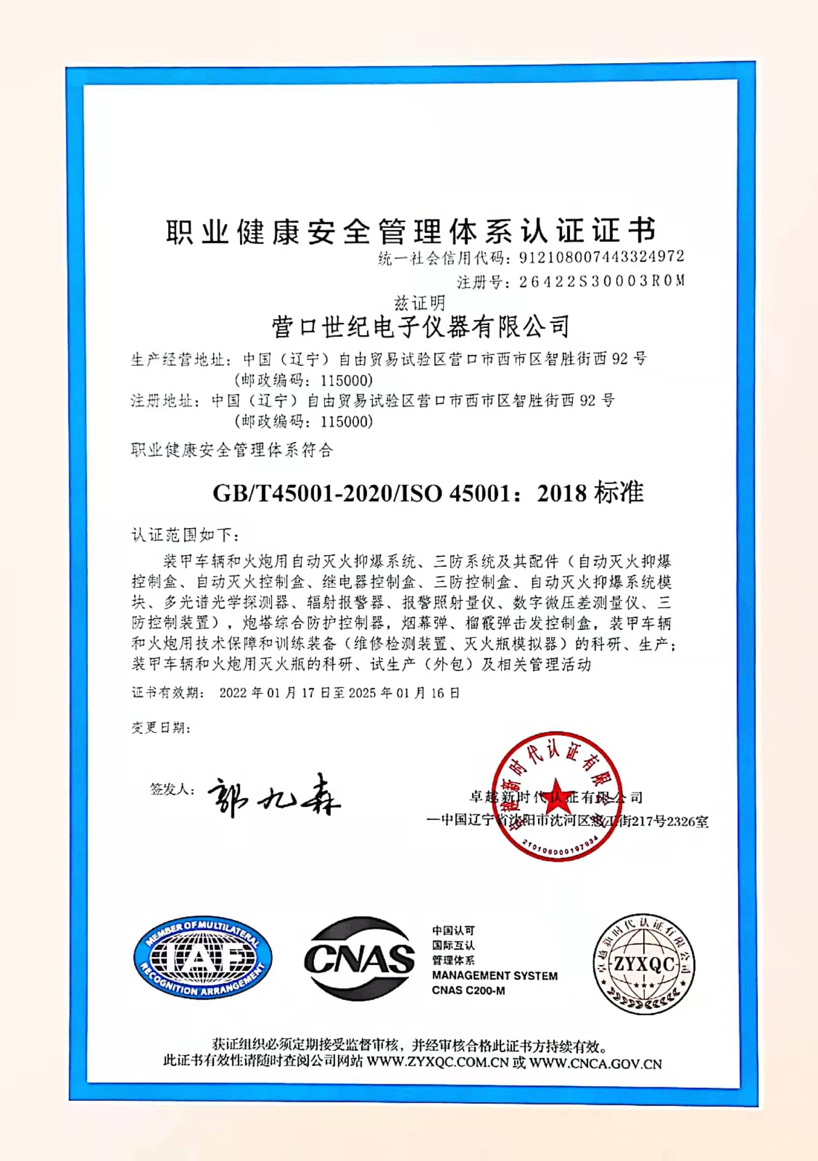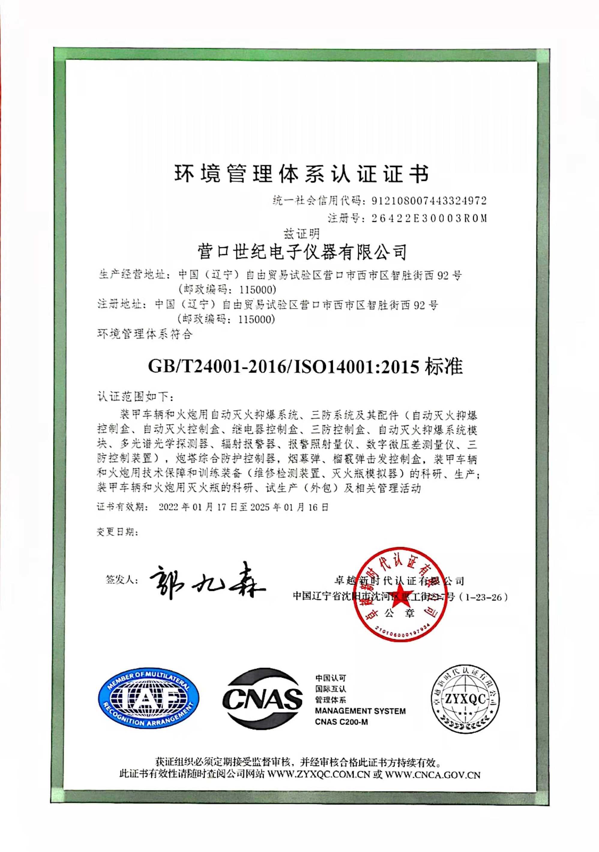營(yíng)口世紀(jì)電子儀器有限公司成功通過(guò)環(huán)安體系認(rèn)證
